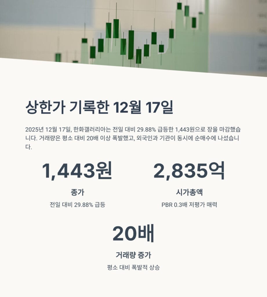 한화갤러리아가 상한가를 기록하며 투자자들의 이목을 집중시키고 있습니다. 단순한 일회성 이슈가 아닌, 실적 개선을 동반한 구조적 변화가 시작되었다는 분석이 나오고 있는데요.
