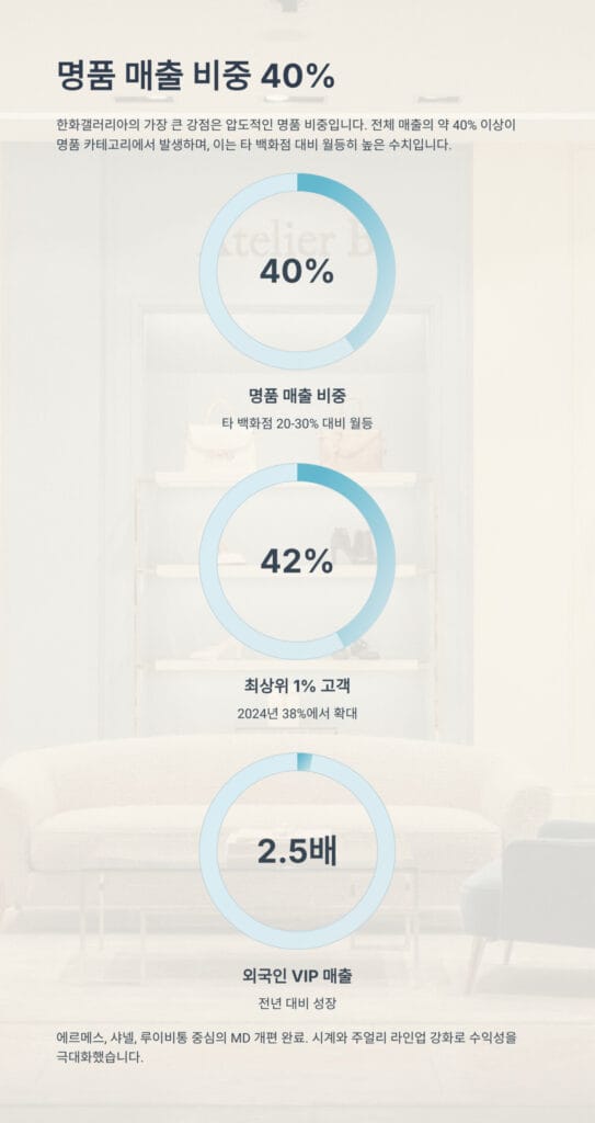 명품 매출 비중 40퍼센트, 차별화된 포트폴리오