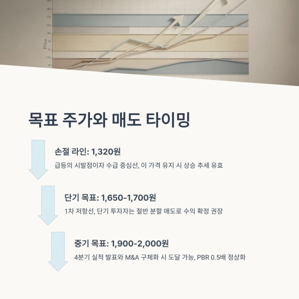 신규 투자자라면 분할 매수 전략을 권장합니다. 1차 진입은 1,350원에서 1,400원 구간에서 30퍼센트, 2차 진입은 1,250원에서 1,300원 구간 조정 시 40퍼센트, 나머지 30퍼센트는 2025년 4분기 실적 발표 후 방향성 확인 뒤 결정하는 방식이 안전합니다.
