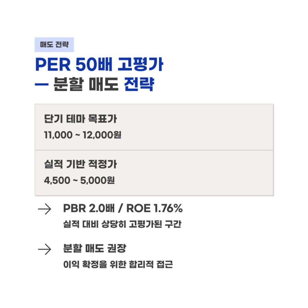 답변 1: 현재 영업이익률 0.91%를 감안할 때 PER 50배는 과열 구간으로 판단됩니다.