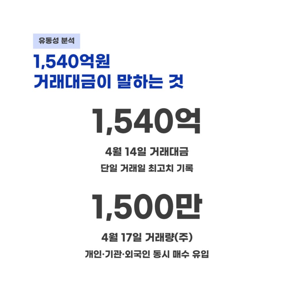 | 거래대금 | 1,540억원 | 4월 14일 최고치 |