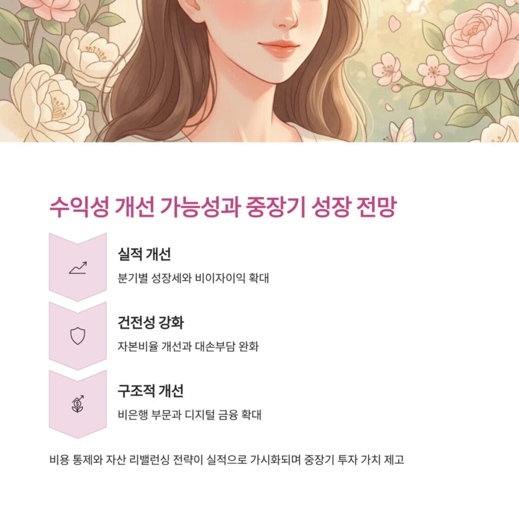 특히 비이자이익 확대와 건전성 지표 개선이 동시에 진행되면서 수익성 개선 가능성은 구조적으로 탄탄한 기반을 갖추고 있다. 이러한 복합적 개선 요인들은 중장기 투자 가치를 높이는 핵심 동력으로 평가된다.